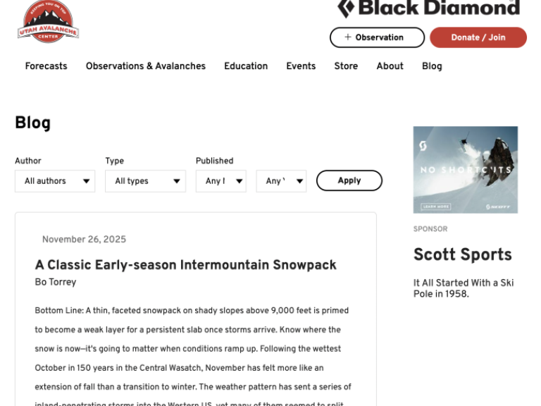 The Utah Avalanche Center (UAC) provides avalanche forecasting, awareness, and educational to support safe winter recreation in the state of Utah. They work with a team of avalanche forecasters to create and issue avalanche advisories and avalanche warnings and provide professional development and community education resources.
